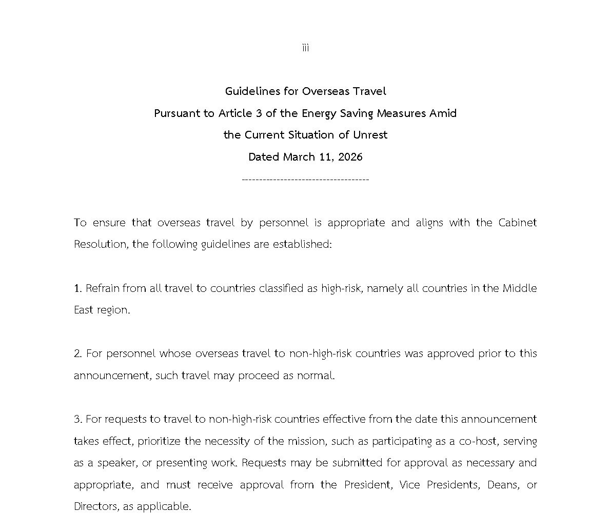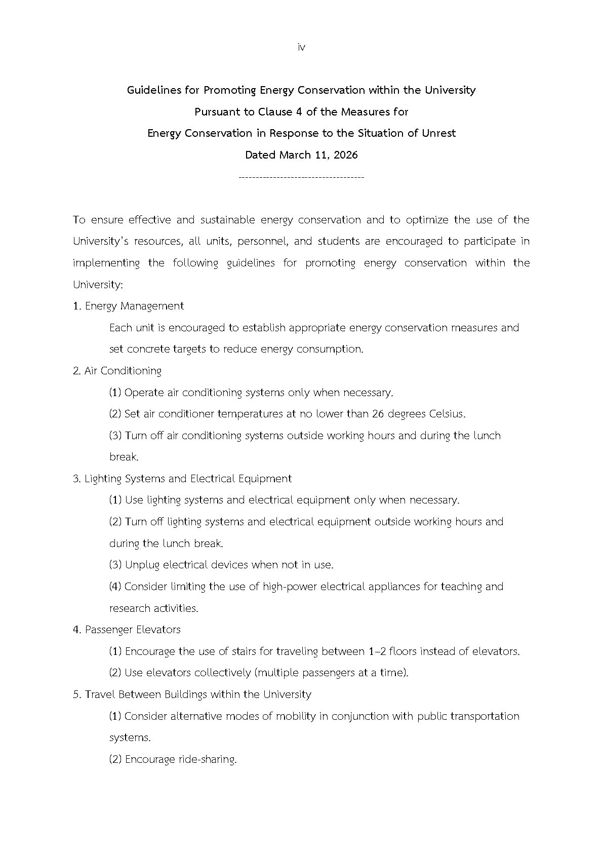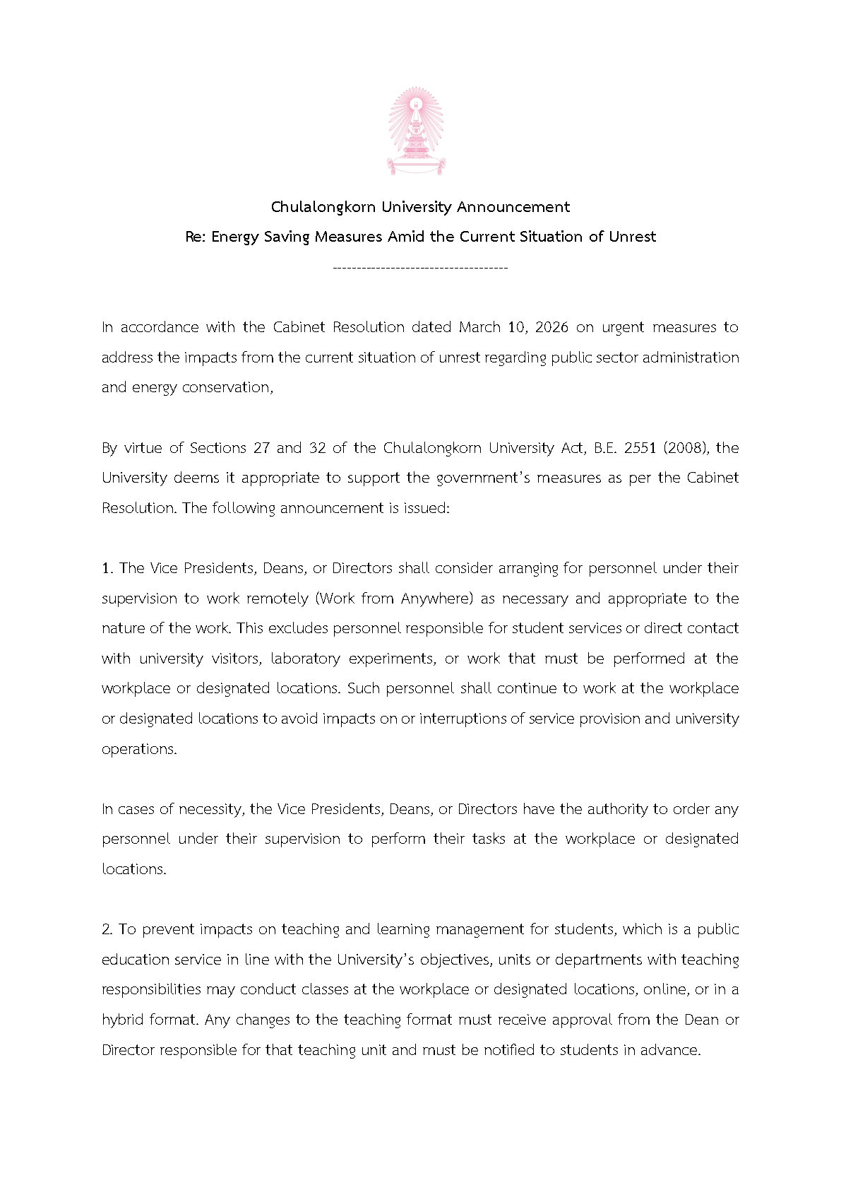 Chulalongkorn University Announcement Re: Energy Saving Measures Amid the Current Situation of Unrest